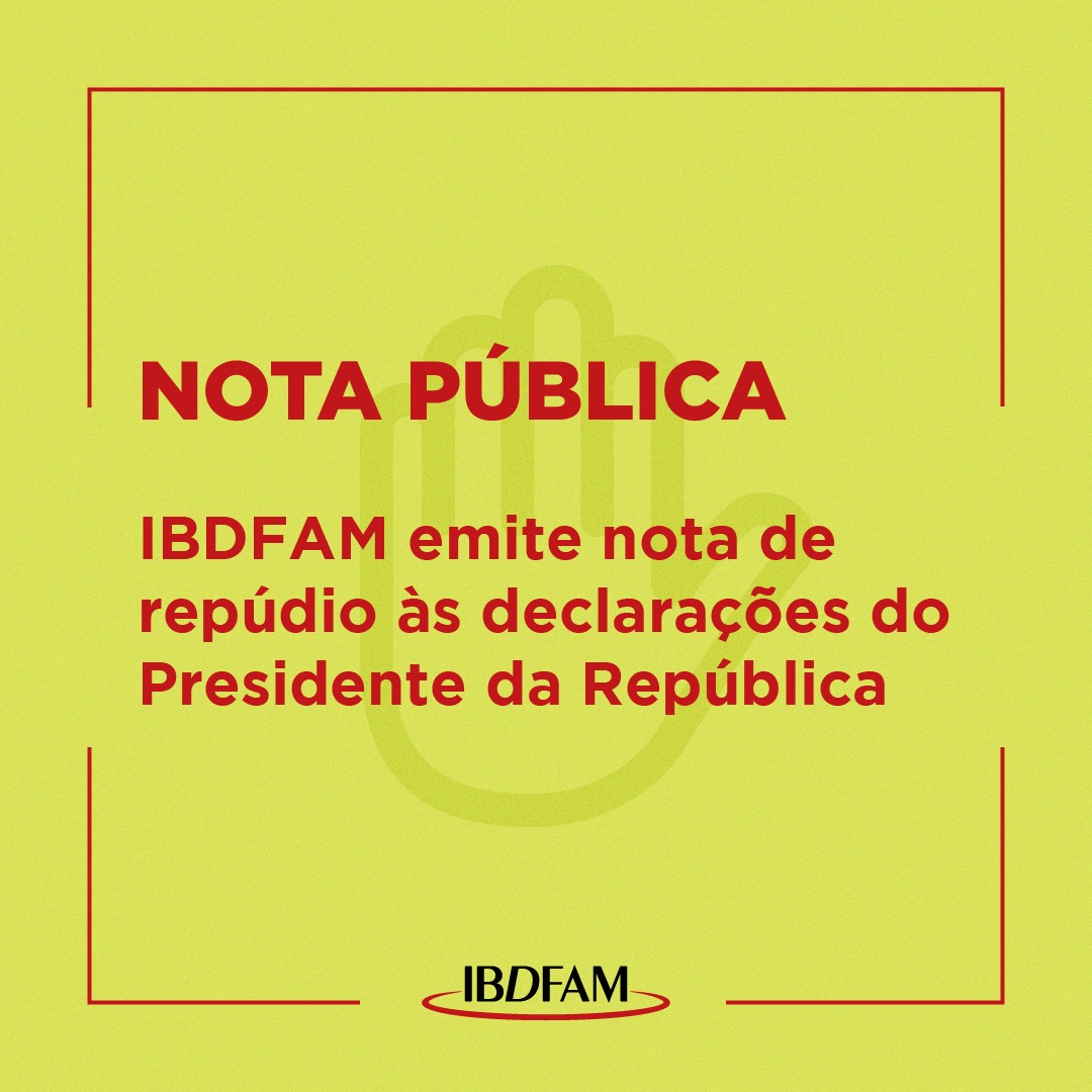 Fonte: Assessoria de Comunicação do IBDFAM O Instituto Brasileiro de Direito de Família – IBDFAM, que se pauta pela defesa de um Direito das Famílias mais humano e humanizador, em sua trajetória de mais de 20 anos, vem a público manifestar seu repúdio às recentes declarações do Senhor Presidente da República, Jair Bolsonaro, que afrontam ...