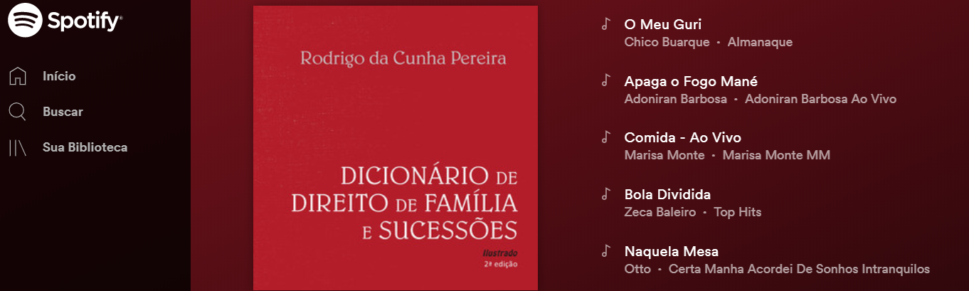 A música popular brasileira sempre abordou temas fundamentais para entender o cotidiano das famílias em nosso país. Numa pesquisa de mais de cinco anos o advogado Rodrigo da Cunha Pereira, reuniu dezenas de músicas que ilustram mais de 60 verbetes do Dicionário de Direito de Família e Sucessões Ilustrado e que agora formam uma playlist ...
